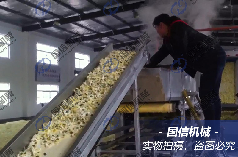 菊花殺青機具有殺青效率高、殺青后菊花色澤自然、口感好,設備操作簡單、工作過程中對環境無污染等特點。