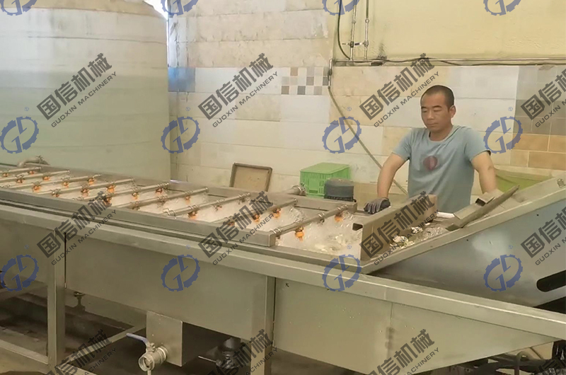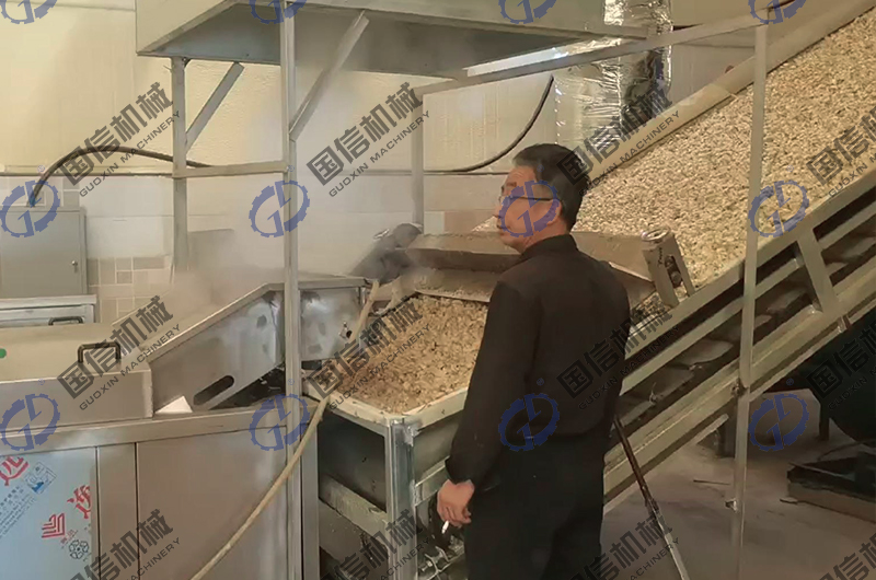 高溫煮燙:煮燙是干燥加工的關鍵環節,是著色保質的保障。高溫煮燙可在不銹鋼(預煮)漂燙殺青機中進行,漂燙蒸煮機的蒸煮時間溫度都可以調節,蒸煮過程中不需要人員操作,省工省力!百合分季的含淀粉不一樣,蒸煮時間也不一樣,煮燙的時間以原料略軟,掰斷鱗片時有清脆響聲,有較強彈性為度。 高溫煮燙的操作要掌握好,熱燙溫度和時間達不到,在干燥過程中就會氧化褐變;如果熱燙過度,鱗片煮爛,干燥后則鱗片容易破裂或形成魚鱗片,色澤加深,影響制品的外觀質量。