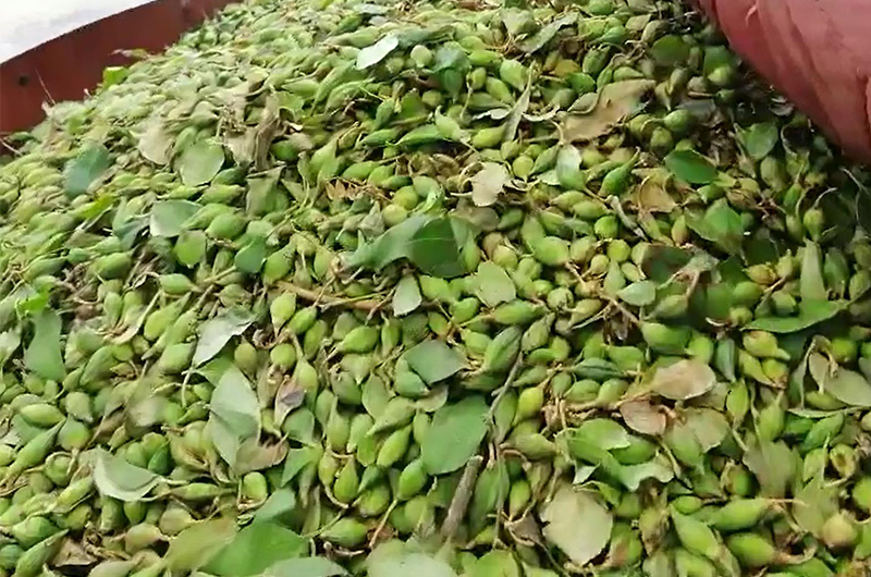 根據連翹烘干種植戶的反饋得出,先將采收的連翹挑選裝盤,建議使用不銹鋼托盤、烘干效率較高,然后推入烘干房。烘干過程的第1~2小時溫度設定60度不排濕,第3~12小時溫度設定55度+排濕功能,這時要根據濕度大小來設定排濕的模式。后期連翹烘干的溫度設定為65度+定時排濕直到完全烘干。這時烘出的連翹干燥均勻,干凈無污染,品相和干燥度達到理想的狀態,非常重要的是連翹及藥用成份得到有效的保存,并且整個烘干過程節能效果顯著,且無任何污染物排放。