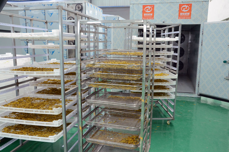 黃花菜別名萱草,又叫金針菜,富含蛋白質、脂肪、鈣、磷、鐵及多種微生素,我國南北方都有栽種。黃花菜采收后要立即進行蒸燙、脫水、干燥。由于黃花菜采收期正值陰雨高溫季節,如只用自然曬干,就會有很多黃花菜因為天氣原因沒有及時烘干,造成品質下降,甚至會發生霉變,造成很大的經濟損失。因此,對黃花菜進行人工干制和選擇合理的干制工藝及干燥設備,對黃花菜生產具有重要的意義。